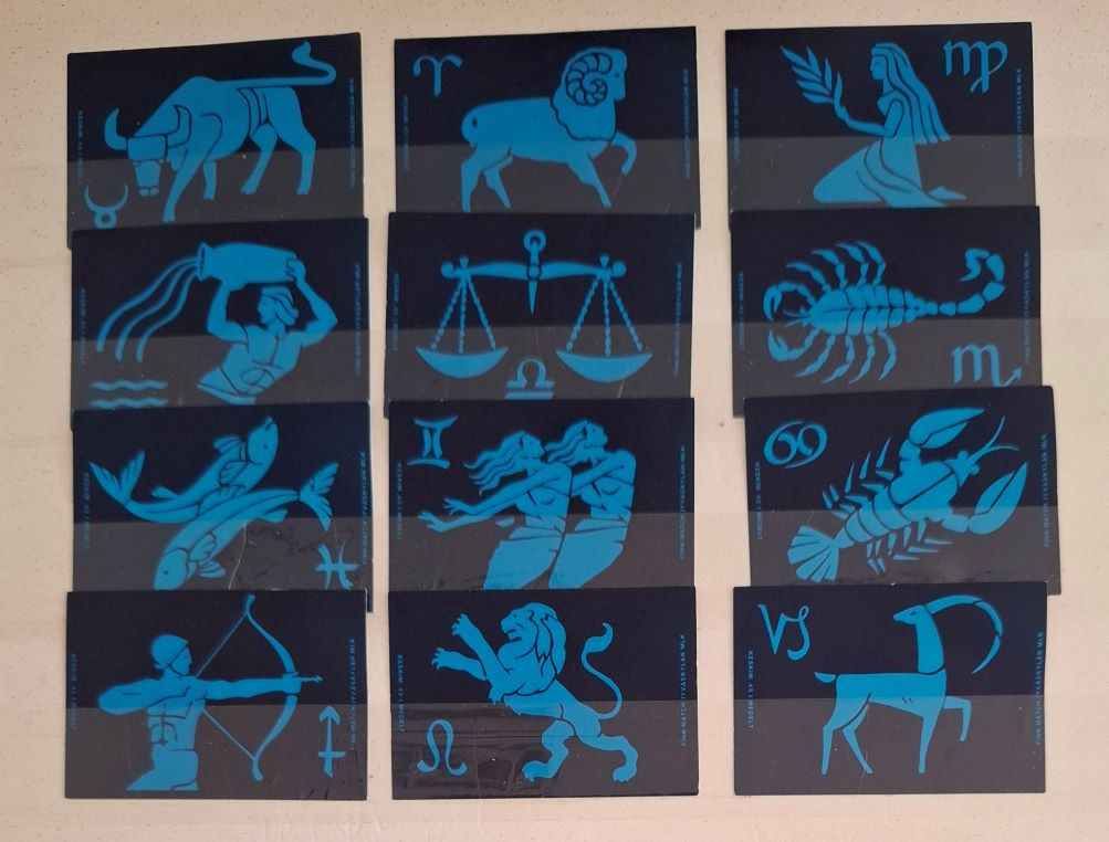 | Number: FIN-00034 Price: 1,20 Available: 1 set Description: Zodiacs Labels: Set of 12 unnumbered labels Pictures: ![]() |