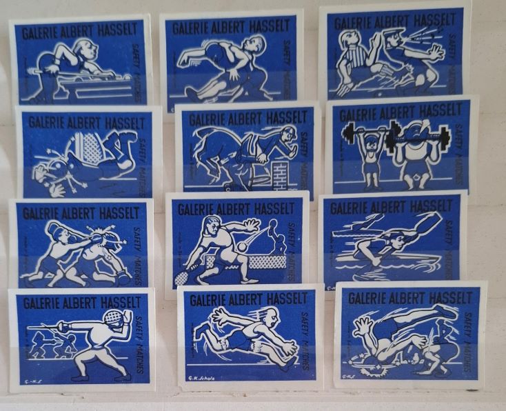 | Number: BEL-00145 Price: Euro 1,20 Available: 1 set Description: Optiek Habex Labels: Set of 12 unnumbered labels Pictures: ![]() | Number: BEL-00146 Price: Euro 2,00 Available: 1 set Description: Belgium Lucifers Club Labels: Set of 20 unnumbered labels Pictures: ![]() |