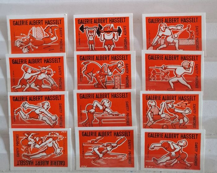 | Number: BEL-00179 Price: Euro 1,60 Available: 1 set Description: Geens, Cyclists, smal format Labels: Set of 16 numbered labels Pictures: ![]() | Number: BEL-00180 Price: Euro 0,80 Available: 1 set Description: Sarma, Paint Labels: Set of 8 unnumbered labels Pictures: ![]() |