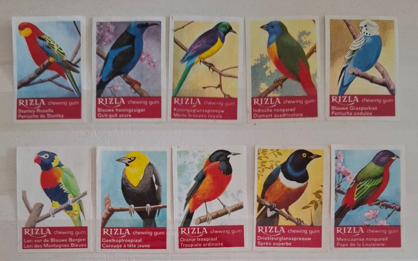 | Number: BEL-00204 Price: Euro 1,00 Available: 1 set Description: Birds, Rizzla, red block Labels: Set of 10 unnumbered labels Pictures: ![]() | |