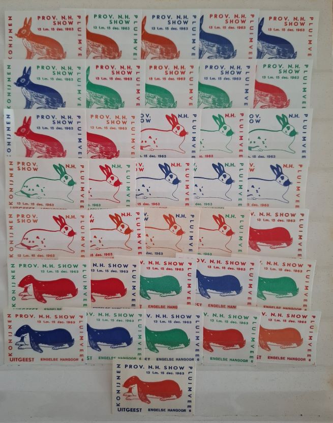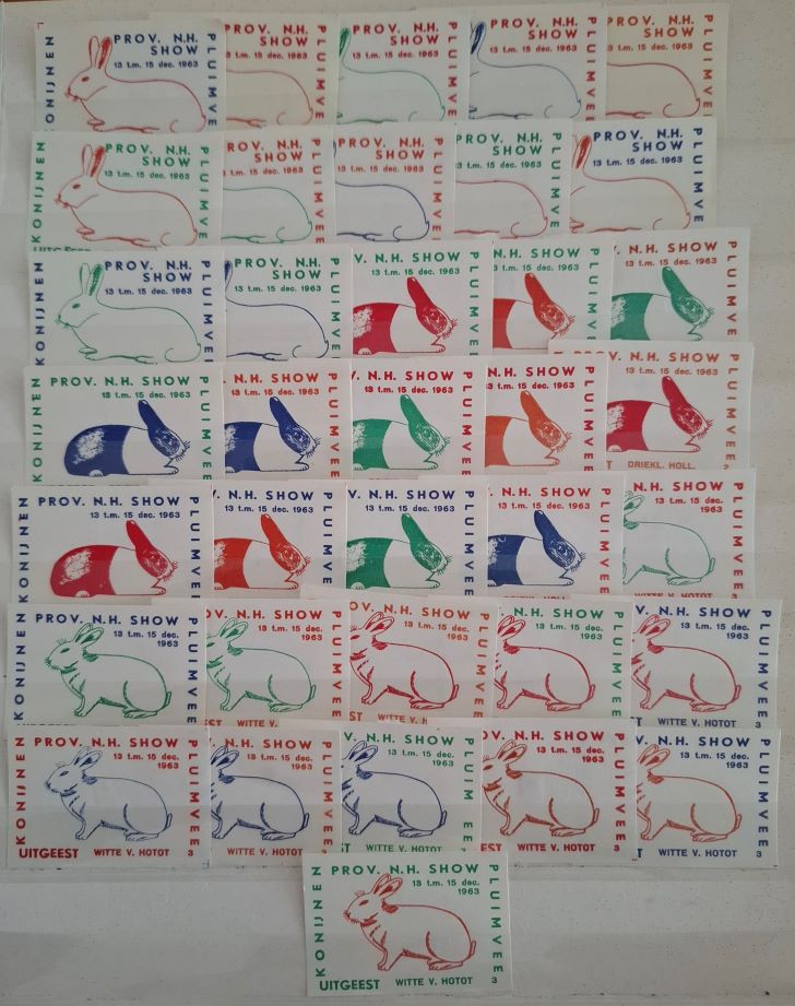 | Number: NL-00236 Price: Euro 7,20 Available: 1 set Description: Konijnen Uitgeest (Rabbits) Labels: Set of 72 labels Pictures: ![]() ![]() | |