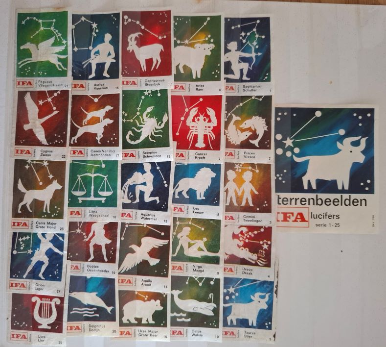 | Number: NL-00323 Price: Euro 2,25 Available: 2 sets Description: Eurotrip, Olympic games Labels: Set of 20 labels and 1 packetlabel Pictures: ![]() | Number: NL-00324 Price: Euro 1,00 Available: 1 set Description: Constellation Labels: Set of 8 labels and 1 packetlabel Pictures: ![]() |