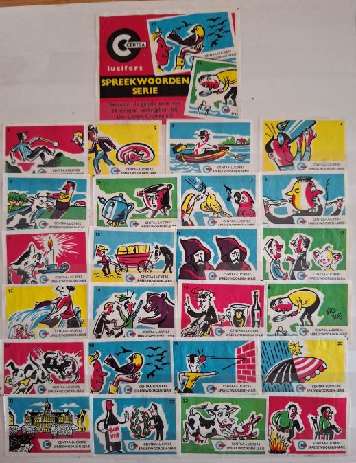| Number: NL-00305 Price: SOLD Available: 1 set Description: Driepinter Labels: Set of 3 labels and 1 packetlabel Pictures: ![]() | Number: NL-00306 Price: Euro 1,15 Available: 1 sets Description: Hobby Clun de Mijnstreek Labels: Set of 9 labels and 1 packetlabel Pictures: ![]() |