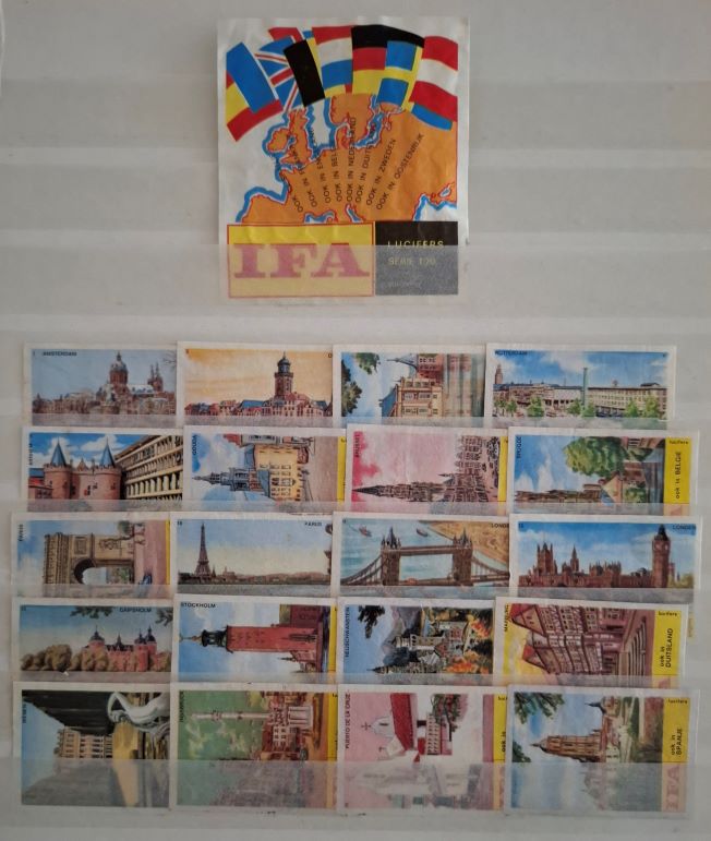 | Number: NL-00318 Price: SOLD Available: 1 set Description: CENTRA, Architecture through the ages Labels: Set of 75 labels and 3 packetlabel Pictures: ![]() ![]() | Number: NL-00319 Price: Euro 2,00 Available: 1 set Description: SRV, European flags Labels: Set of 18 labels and 1 packetlabel Pictures: ![]() |